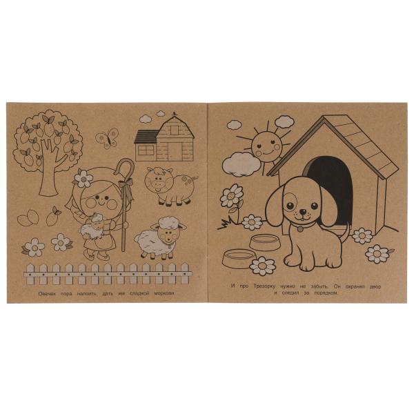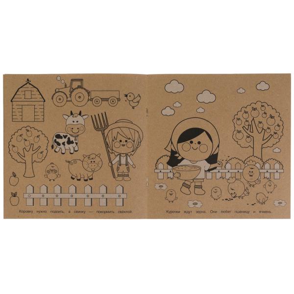 НА ФЕРМЕ. Эко Раскраска 200х200 мм. Крафт-бумага. 8 стр. 2+2 Умка в кор.50шт