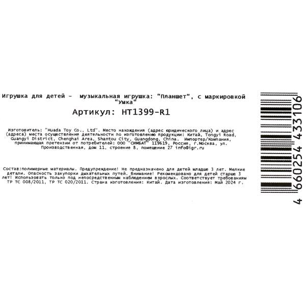 Игрушка "Обучающий планшет.150+ песен, стихов и звуков. Жукова М.А. в кор. Умка в кор.60шт". Размер: 0.103.