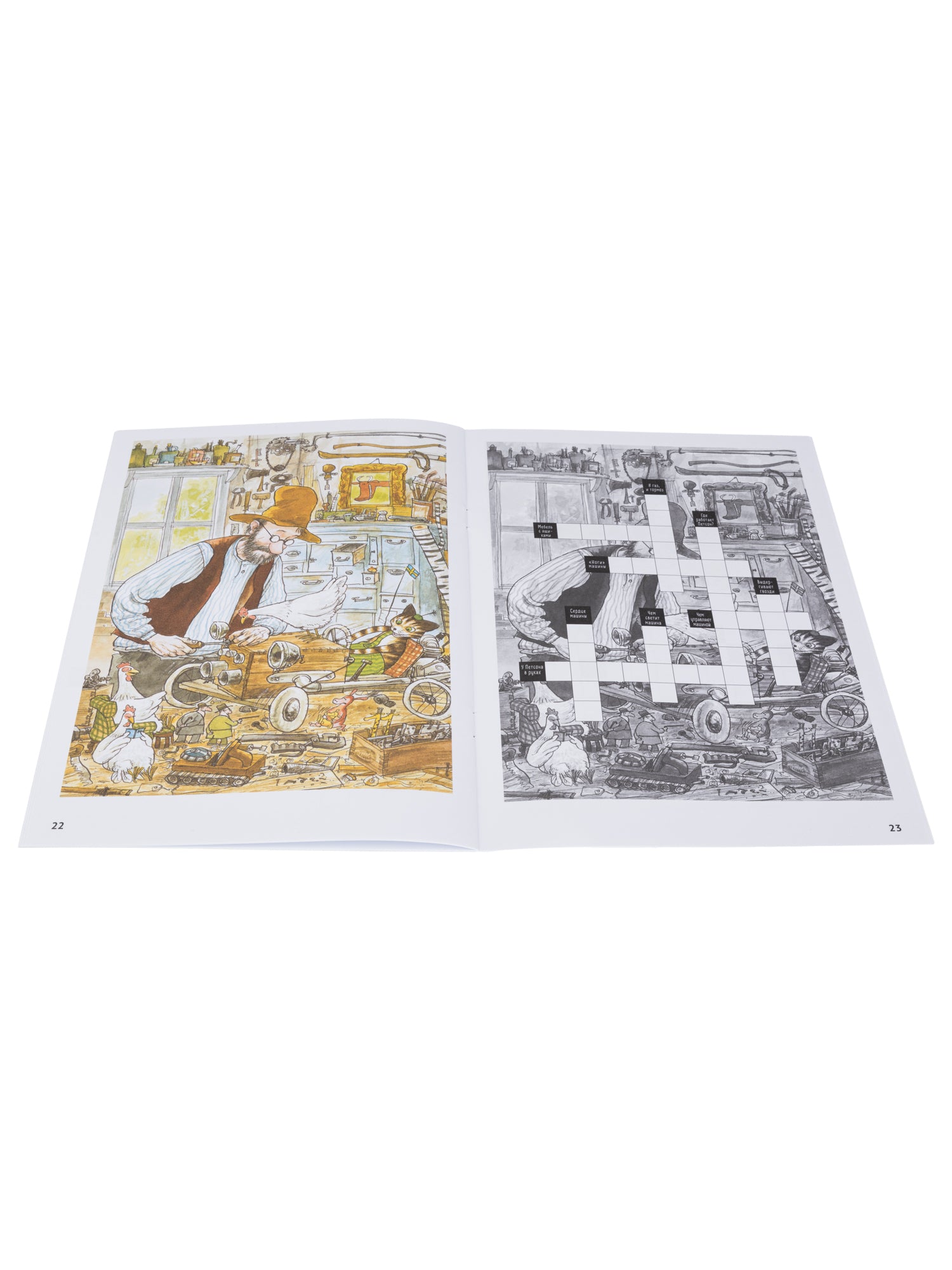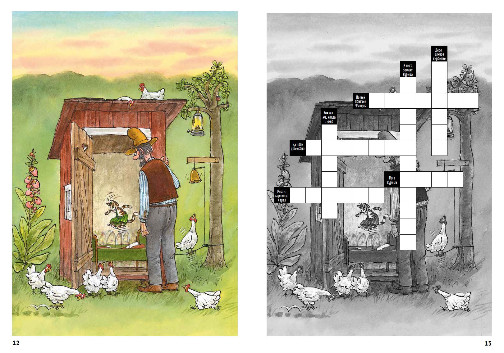 Сборник кроссвордов для любителей творчества Свена Нурдквиста и его героев — котенка Финдуса и старика Петсона. В сборник вошли 17 кроссвордов разных уровней сложности. В некоторых из них для подсказки вписаны буквы. В конце приводятся ответы.Вкратце:- Целых 17 кроссвордов.- Разный уровень сложности.- В конце приведены решения всех кроссвордов.Для кого:Для детей от 5 лет.О серии:Серия книг про старика Петсона и его друга-котенка Финдуса, живущих в деревне, была придумана шведским художником Свеном Нурдквистом в 1984 году. С тех пор об этих героях узнал весь мир: книги переведены на множество языков.Книги о Петсоне и Финдусе стали новой детской классикой. По ним ставят спектакли, делают компьютерные игры, приложения, раскраски, календари и подарочные наборы. На них выросло не одно поколение детей в Швеции и России.Отзыв критика:Я влюбилась в Нурдквиста именно за его иллюстрации, смешные и трогательные. Они возвращают напрямую в наше собственное детство: помните, как это — лечь в траву и представить себя маленькой, живущей в травяном лесу? Все листья, жучки и муравьи оказываются соразмерны тебе, и столько всего открывается в этом крохотном мире! Примерно это и происходит, когда смотришь иллюстрации Нурдквиста — каждая страница являет собой такой мирок. Кроме главных действующих героев, которые очень характерны, буквально каждая букашка, каждый цветок живет своей жизнью и тоже имеет характер. Екатерина Голубева. «Папмамбук»Об авторе:Свен Нурдквист родился в городе Хельсингборге. Уже в пятнадцать лет он знал, что будет художником. Поэтому, учась на архитектора, он одновременно ходил на курсы по искусству и рисованию. Поначалу Свен Нурдквист создавал иллюстрации к школьным учебникам. А от учебников недалеко и до детских книг. Работы Нурдквиста участвуют во многих международных выставках.