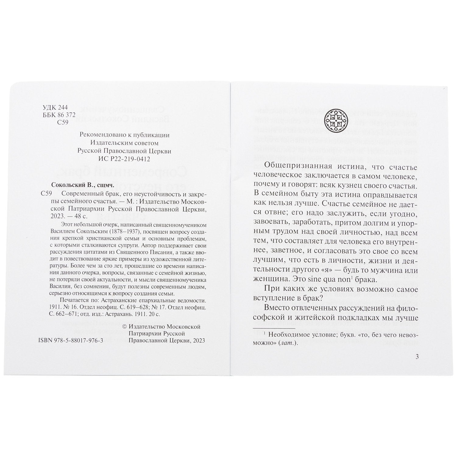 Этот небольшой очерк, написанный священномучеником Василием Сокольским (1878–1937), посвящен вопросу создания крепкой христианской семьи и основным проблемам, с которыми сталкиваются супруги. Автор поддерживает свои рассуждения цитатами из Священного Писания, а также вводит в повествование яркие примеры из художественной литературы. Более чем за сто лет, прошедшие со времени написания данного очерка, вопросы, связанные с семейной жизнью, не потеряли своей актуальности, и мысли священномученика Василия, без сомнения, будут полезны современным людям, серьезно относящимся к вопросу создания семьи.