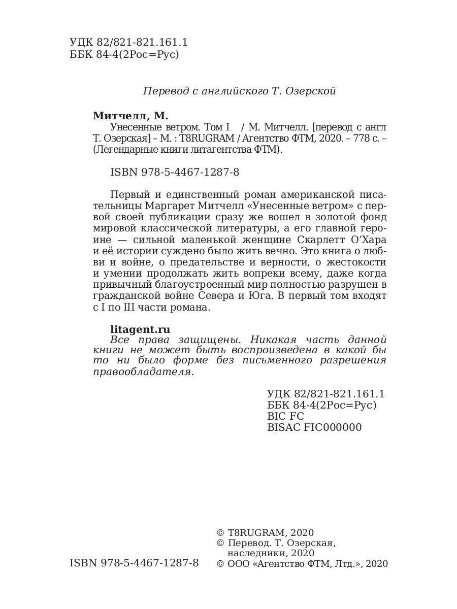 Автор: Митчелл Маргарет, «Унесенные ветром. Том 1»: Первый и единственный роман американской писательницы Маргарет Митчелл «Унесенные ветром» с первой своей публикации сразу же вошел в золотой фонд мировой классической литературы, а его главной героине — сильной маленькой женщине Скарлетт О'Хара и её истории суждено было жить вечно. Это книга о любви и войне, о предательстве и верности, о жестокости и умении продолжать жить вопреки всему, даже когда привычный благоустроенный мир полностью разрушен в гражданской войне Севера и Юга. В первый том входят с I по III части романа.