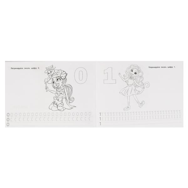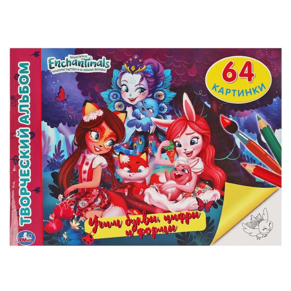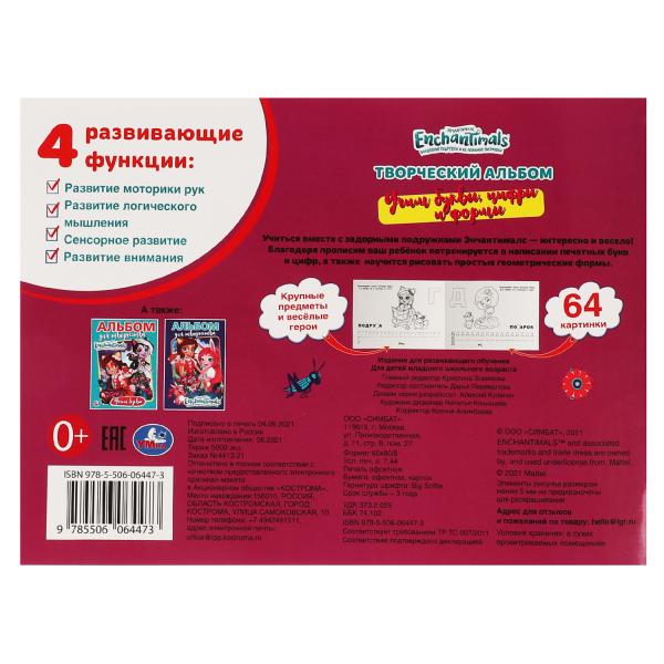 Учим буквы, цифры и формы Альбом-раскрасок А4. Энчентималс. 285х210мм, 64 стр. Умка. в кор.20шт