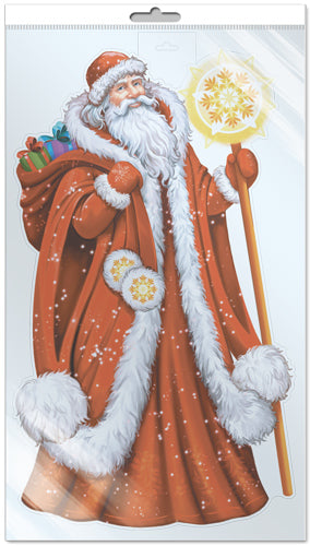*Ф-16563 ПЛАКАТ ВЫРУБНОЙ А3 В ПАКЕТЕ. Дед Мороз (двухсторонний, ВД-лак, в индивидуальной упаковке, с европодвесом и клеевым клапаном)