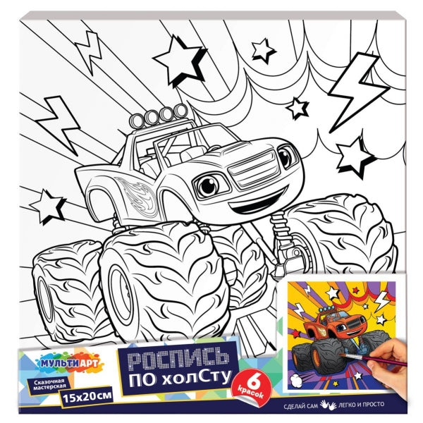 Холст по контуру 15*15 см машинка МУЛЬТИ АРТ в кор.48шт