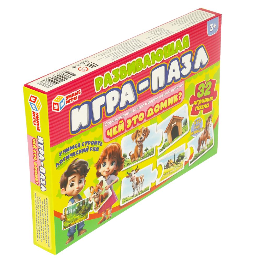 Чей это домик? Развивающая игра-пазл. 32 пазла. 285х190х35 мм. Умные игры в кор.20шт
