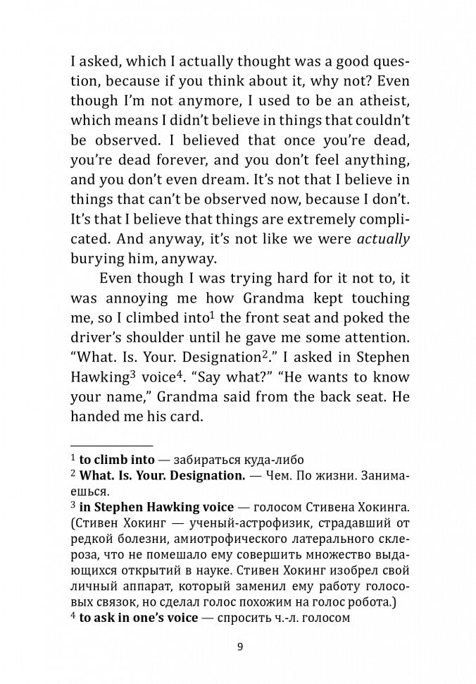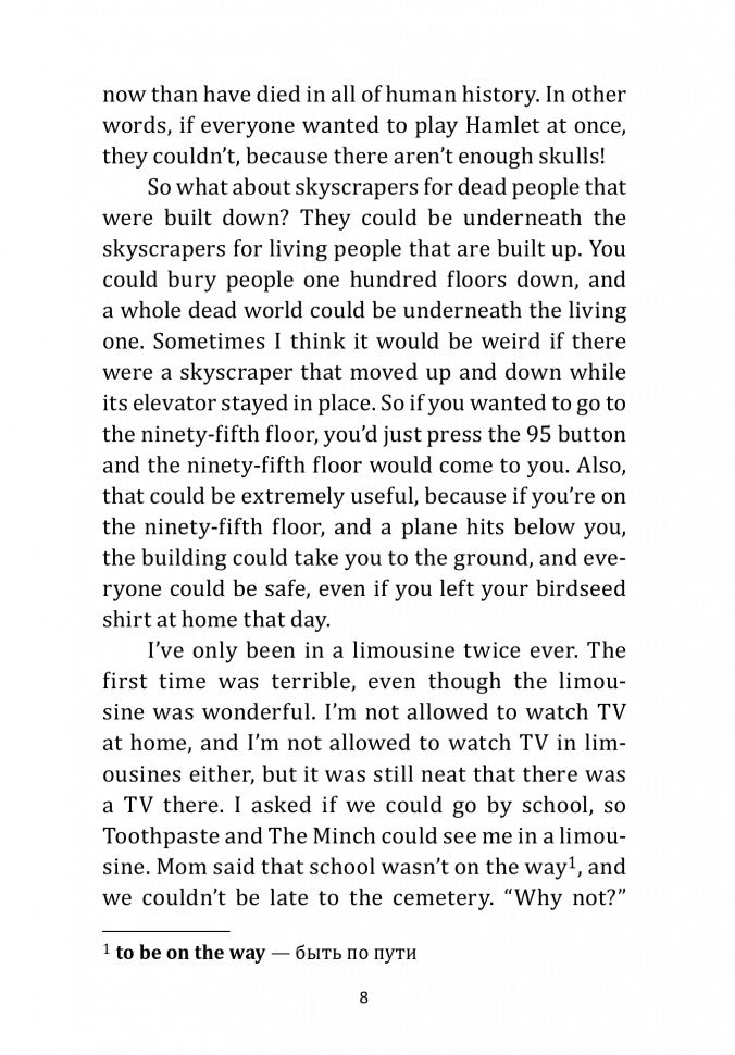 Трогательная история рассказана от лица 9-летнего мальчика, отец которого погиб во время теракта 11 сентября 2001 года в одной из башен-близнецов. В ней есть и интрига, и почти что детективный сюжет, и неожиданная развязка. Атмосферная, оригинальная, по-детски непосредственная и по-взрослому глубокая книга найдет отклик в сердце каждого, кто её прочтёт. Обратите внимание на нестандартное оформление текста в книге. В некоторых местах, на первый взгляд, кажется, что присутствует типографский брак, но нет - это художественный прием автора. english/английская классика/книга на английском языке/читать на английском/английский в оригинале/чтение на английском/домашнее чтение/английское чтение B2/английский текст/полный неадаптированный текст
